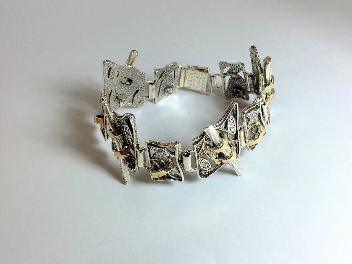 צמיד חוליות כסף טהור 925 בשילוב זהב 9K.